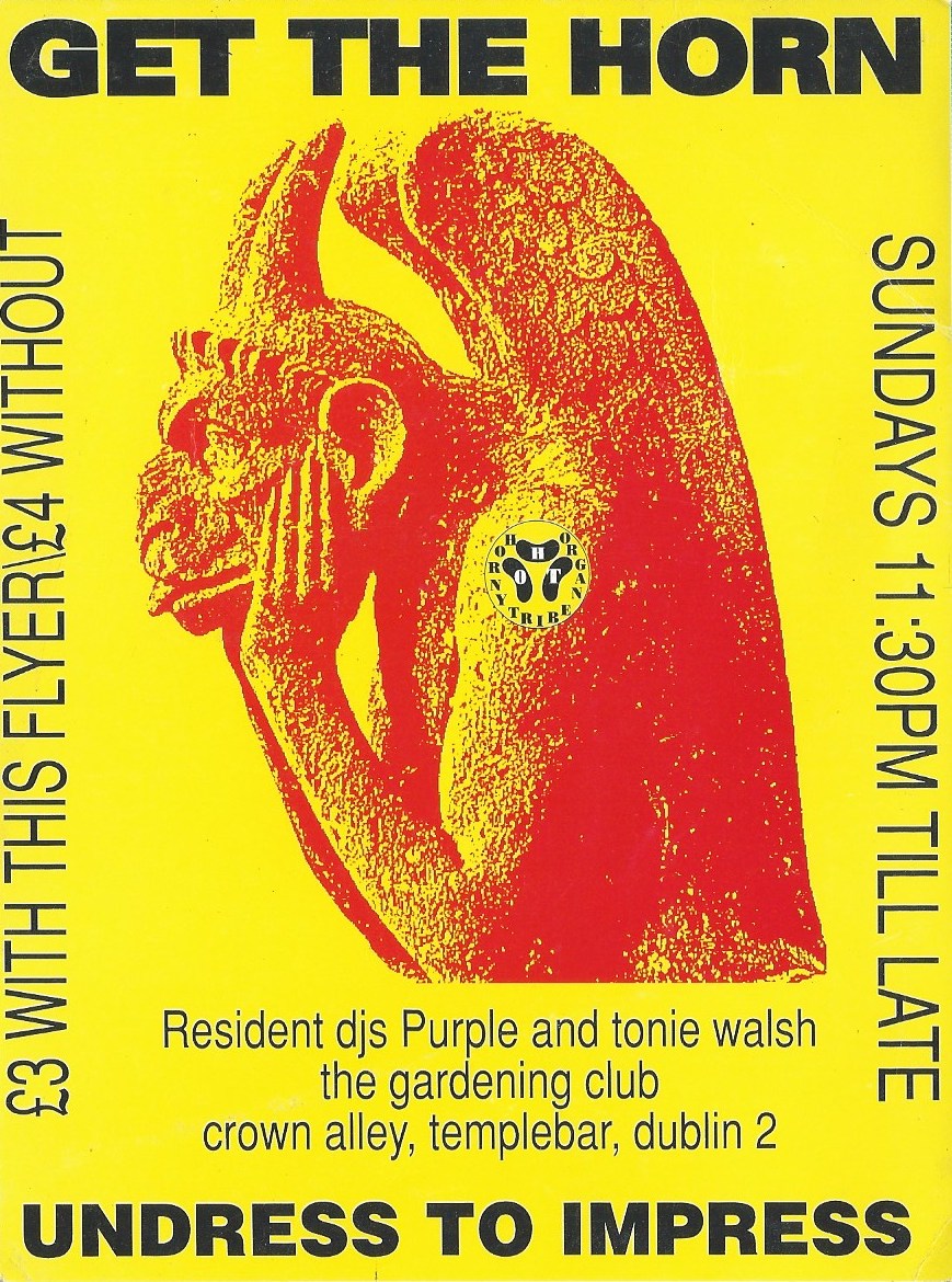 Before the internet, events were routinely advertised by distributing printed adverts. Nightclub promoters went around the bars handing out flyers intended to attract drinkers to continue their night in their club. It was a competitive market and the flyer needed to attract attention – a photocopied A5 sheet just wasn’t going to cut it on a Friday night in Hogan’s or the Front Lounge.