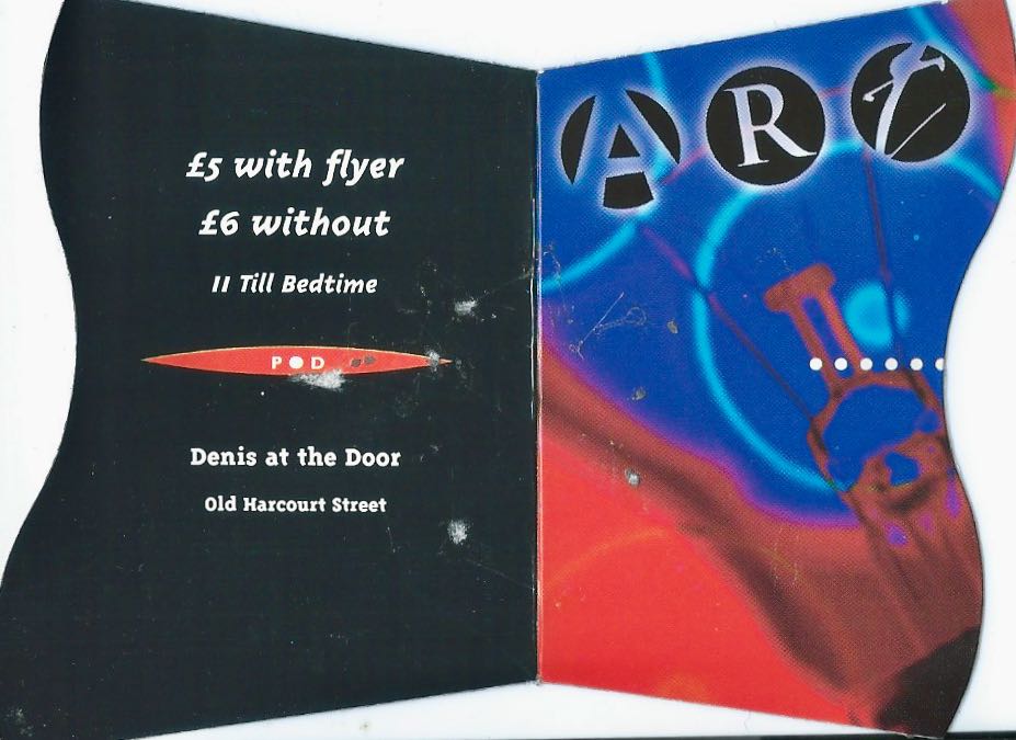 I also have a flyer for a Friday night club in P.O.D called ART with Paddy Sheridan as DJ. I don’t remember the night; I suspect it predated H.A.M.