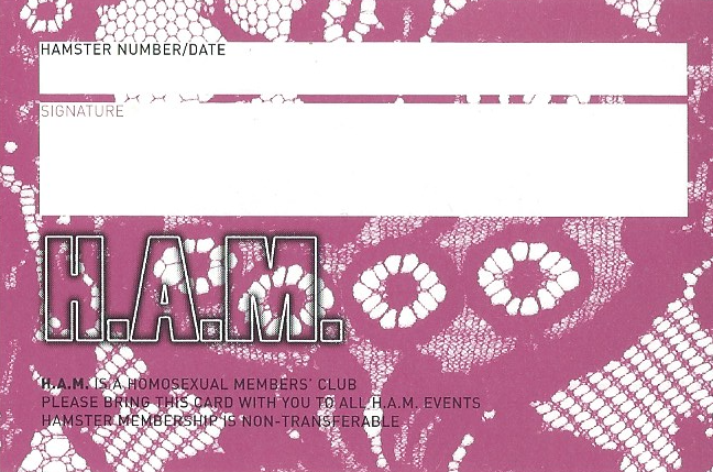 H.A.M. was a long-running gay Friday-nighter at the P.O.D. (The acronyms stood for Homo Action Moves and for House of Dance, respectively).